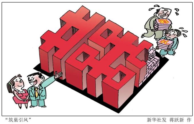 一些地方还通过举办集体婚礼等形式,引导群众转变婚俗观念,在全社会营造文明健康的婚礼新风尚。彩车巡游、新婿登场、跨马鞍、执手之礼……去年12月,一场传统中式集体婚礼在江西省武宁县举办,参与的16对新人都是“零彩礼”。其中一位新娘付婷说:“彩礼不是婚姻幸福的筹码,这种集体婚礼简单而又充满仪式感,身边很多人说我的婚礼办得好。”武汉大学中国乡村治理研究中心主任贺雪峰等人建议,结合移风易俗和生育政策优化调整,进一步引导群众破除旧观念,树立“彩礼高换不来家庭幸福”“感情才是美满婚姻基础”等理念,摒弃高价彩礼的婚嫁陋习。