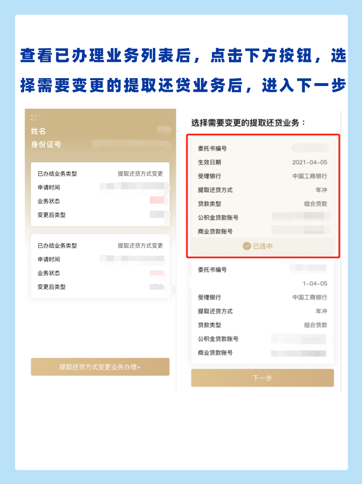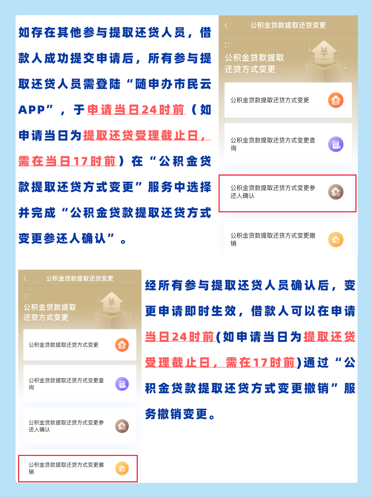 公积金贷款期间,符合条件的借款人只需在手机上操作,轻轻一点,就可以在线申请公积金贷款提取还贷方式变更,重新选择提取还贷方式啦~