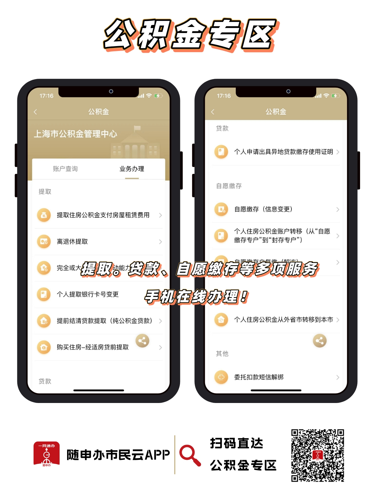更多服务:随申办市民云APP还有【公积金专区】,包含超多公积金相关业务办理服务哦~