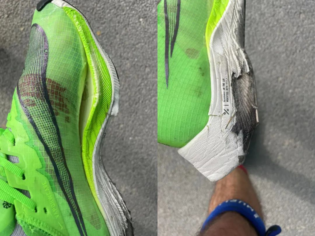 Thomas Royet's running shoes are worn out after finishing his half marathon race this morning. Courtesy of the interviewee半马完赛后,Thomas Royet发现自己的“战鞋”跑烂。