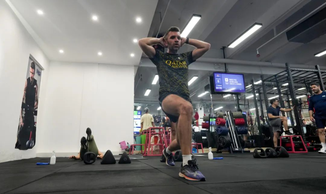 Thomas Royet is in a process of a workout at F45, a gym in Shekou on Feb. 3. Liu Xudong2月3日,Thomas Royet在蛇口的健身房F45锻炼。