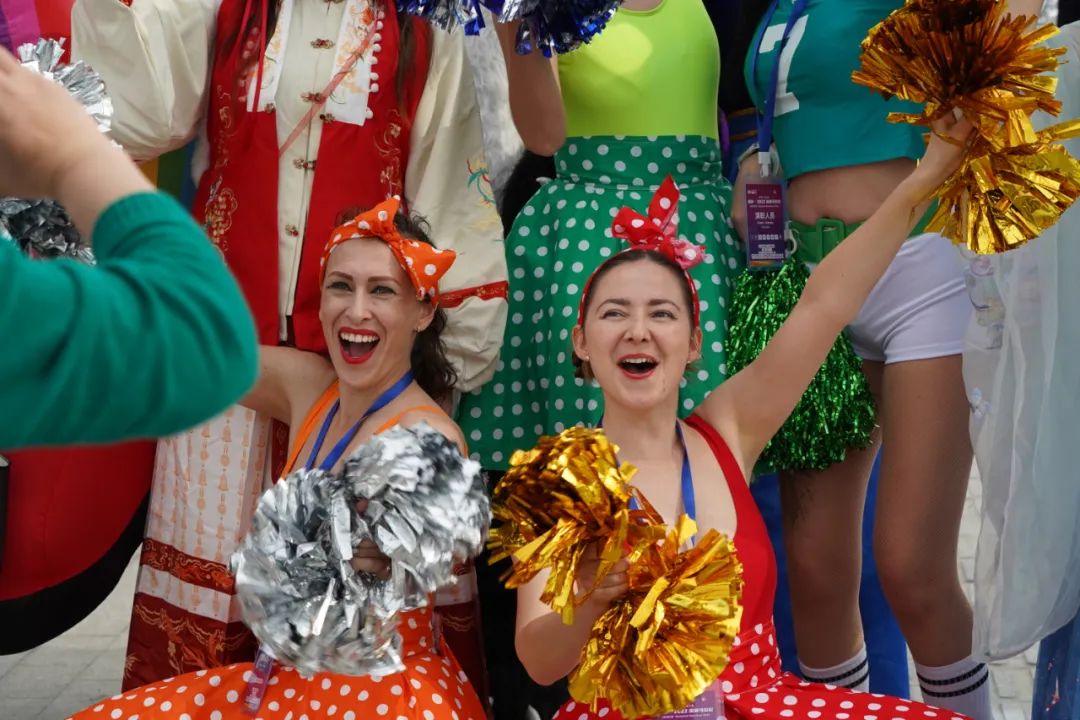 Enthusiastic cheerleaders pose for a photo. Wang Haolan热情洋溢的啦啦队。