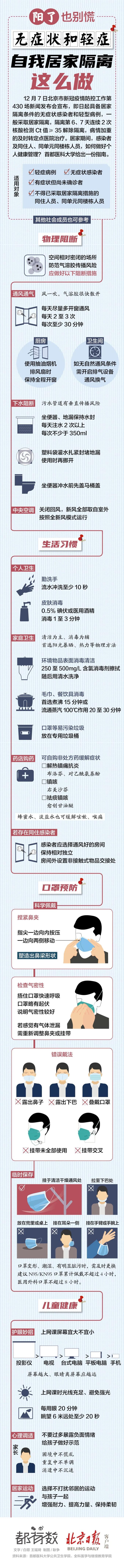 12月7日北京市新冠疫情防控工作第430场新闻发布会宣布,即日起具备居家隔离条件的无症状感染者和轻型病例,一般采取居家隔离,隔离第6、7天连续2次核酸检测Ct值≥35解除隔离,病情加重的及时转定点医院治疗。居家期间,感染者及同住人、同单元同楼栋人员,如何做好个人健康管理?首都医科大学给出一份指南。