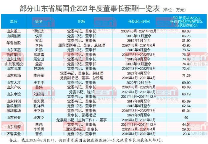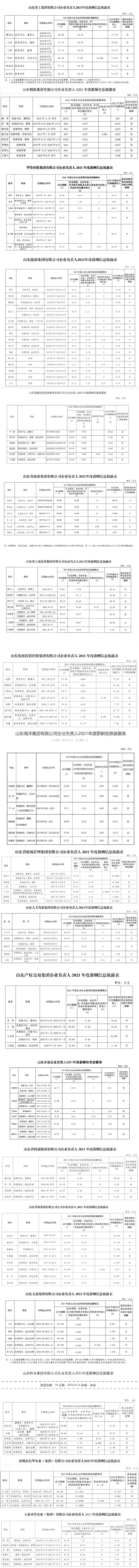 除上述19家国企外,其他省属国企企业负责人2021年度薪酬信息还在陆续披露中,经济导报记者将持续关注,继续带你看山东国企老总的“工资条”。