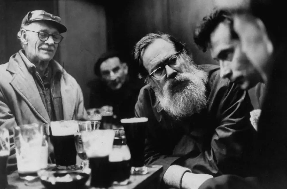 这些男人女人之间都是相互联系的,不仅生理上有着同样的困扰,还存在一系列重复的模式。他们是彼此的挚友和同盟,是彼此的导师、学生与灵感来源。除了爱荷华的雷蒙德·卡佛和约翰·契弗,还有其他可谓“欢喜冤家”的“酒友”。二十世纪二十年代的巴黎,海明威和菲茨杰拉德就曾同在酒馆中痛饮狂歌;狄兰·托马斯去世时,诗人约翰·贝里曼是第一个赶到他床前的。