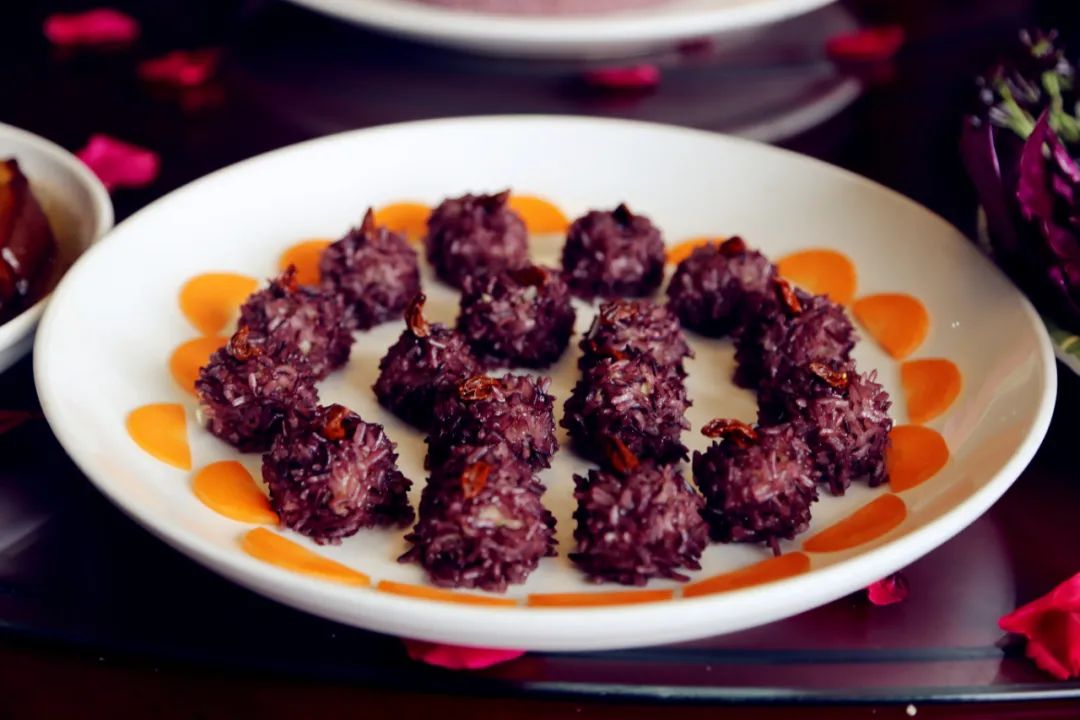 紫米宴包含紫米鸡、紫米圆、紫米肠、紫米粑粑……满满一桌的紫色美食,颜值与美味并存,既养眼又养胃。吃过的人大多会赞叹道:墨江,真是“吃货”的天堂!