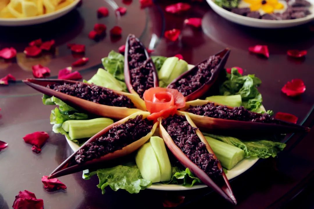 普洱市墨江是“中国紫米之乡”,因呈紫色而得名的墨江紫米,素有“米中极品”之称,是煮食、加工副食品、食疗的佳品。当地人将生态营养的紫米用心做成各种美味,形成了紫米宴,充溢着墨江这方土地的人情味。