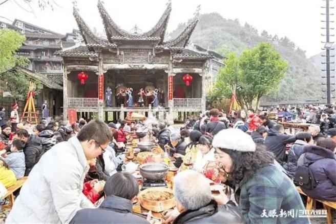 游客在乌江寨国际旅游度假区参加寨主家宴,欣赏文娱节目。李仁军 摄(贵州图片库发)强特色:体旅桥旅释放新引力