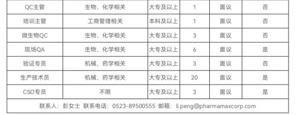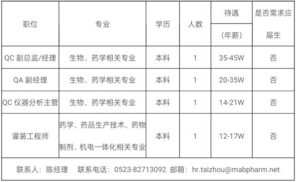 江苏泰康生物医药有限公司(泰康生物)创建于2008年7月,专业从事治疗性抗体药物和重组蛋白药物等大分子生物药的生产。泰康生物是江苏省高新技术企业,自成立以来,先后被评为国家高新技术企业、江苏省企业创新先进单位和江苏省企业知识产权管理标准化示范先进单位等,拥有“江苏省治疗性抗体药物工程技术研究中心”与“江苏省基因工程药物工程技术中心”两个平台。职位