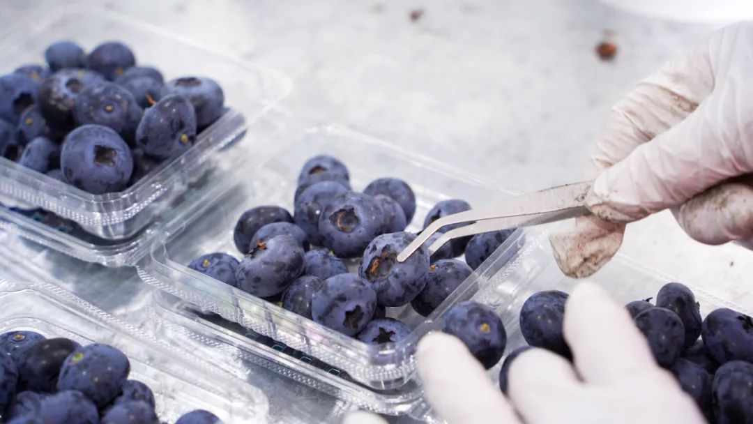 工人采摘蓝莓。而灏岚农业蓝莓于2月份率先上市,避开传统及进口蓝莓市场竞争,抢抓市场空档期,蓝莓鲜果于基地成熟即采摘并直供市场,品质有保证,极具竞争优势。