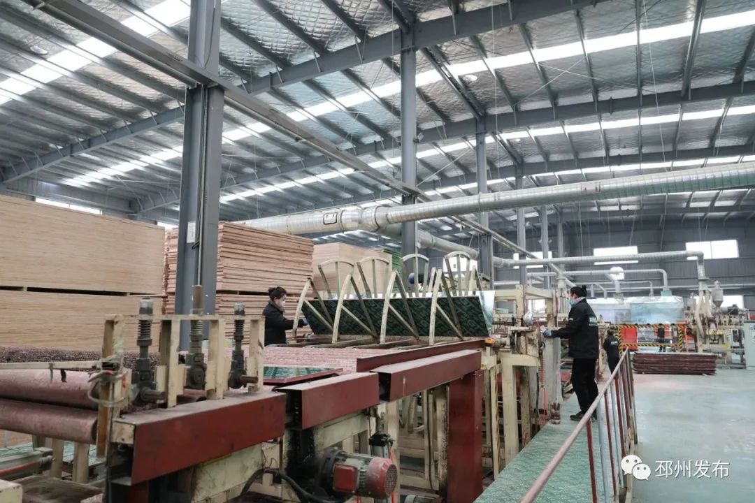 江苏琪诺新材料有限公司主要生产建筑模板,企业车间机器轰鸣,工人们抢抓生产,一片热火朝天的繁忙景象。
