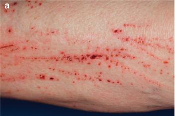 出现半年以上固定模式的皮肤瘙痒。超过84%的患者几乎每天都会出现阵发性、对称性的大面积皮肤瘙痒,其中背部和手臂的瘙痒最常见,部分患者可自行缓解。由于病人的反复搔抓,后期可抓出现丘疹、溃烂、色素沉着、皮肤肥厚、结节性痒疹、微血管病等继发性皮肤损害。