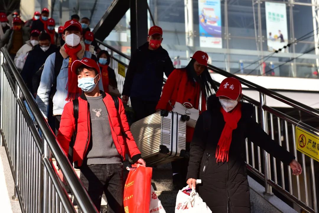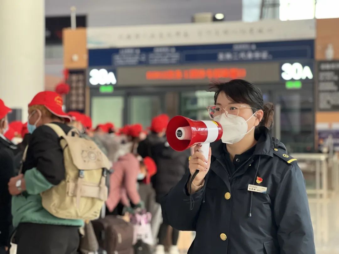 进站后,为让务工人员出行顺畅,胡娜娜向车站申请在安检口、进站口、站台增派工作人员,及时开辟“绿色通道”,减少务工人员排队等候时间。她和同事们划分专用候车区及检票口,提供预定联乘票服务,做好出行安全知识宣讲及问询解答工作。
