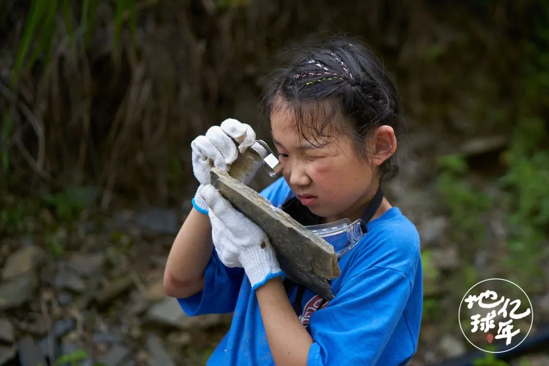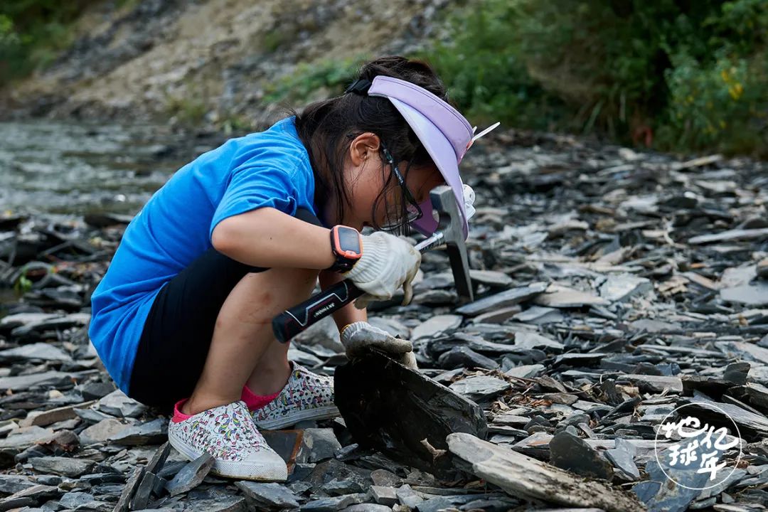△2022年7月,湘西,荷叶在采集化石标本然而,事情的反转超乎我的想象。一到野外,换上T恤,戴上手套和护目镜,荷叶就扑在了岩石堆上,整个儿豁出去了。几小时下来,小脸晒得黑红黑红的,浑身是汗,衣服上全是土,全然忘了外公外婆的存在,没有撒过一声娇。