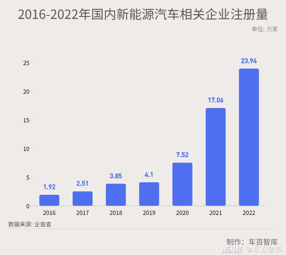 面对如此大的机遇,很多企业都想进入该产业,蜂拥而入。企查查数据显示,我国现存新能源汽车相关企业达60.58万家,而且,近几年来,我国新能源汽车相关企业注册量不断增加。