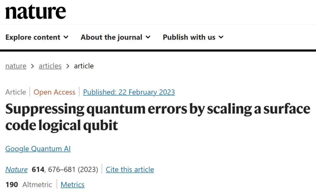 原标题:《谷歌纠错量子计算机新里程碑,逻辑量子比特原型登上Nature》