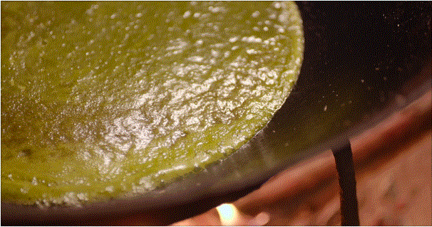 翠绿掩映着微黄,浓沫翻腾着细浪。此情此景,如果说煮咖喱也能看到,不算什么,那么其味道的腥酸苦臭,一定会让你联想到浮云苍茫的青青草原之上,那最不经意间的一坨。