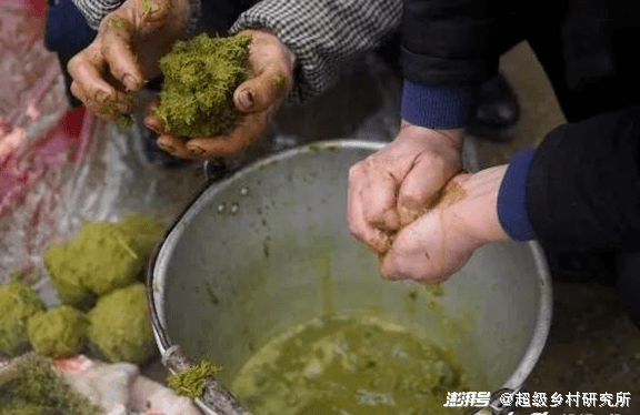 取出这一团团翠绿之芯,拌以牛胆汁,佐以花椒、陈皮、香草,入锅沸煎三十分钟。可以想象,在那黔东南细雨迷蒙的深秋,炉火炽烈,牛瘪沸腾,那幽然的气味伴着炊烟,在小寨里弥漫飘散,路过的人不禁感叹,这是谁家又要“过年”。