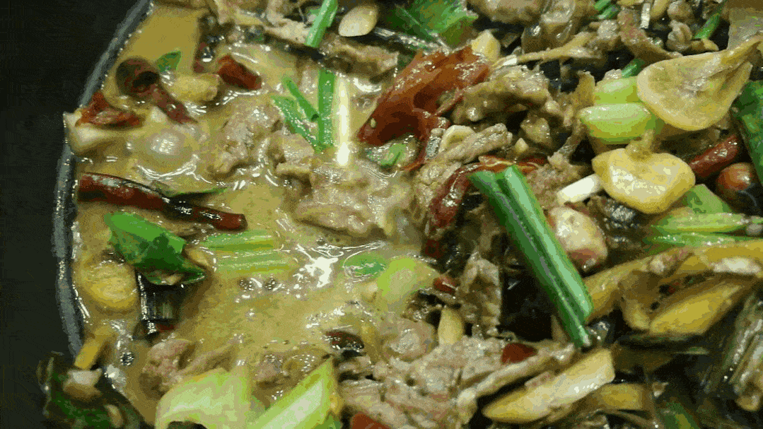 最好的牛瘪,要配上最好的牛肉。剖胃之牛未冷,取最鲜嫩的一块,置于樟木砧板,快刀切片,生姜爆炒,出锅后倒入牛瘪汤底。小火煮沸,配上藿香、川芎、香葱、辣椒。此时,便可以用你最广博的胸襟去感受这最坦诚的味道了。据说,牛瘪还有着有健胃、祛热和助消化的功效。