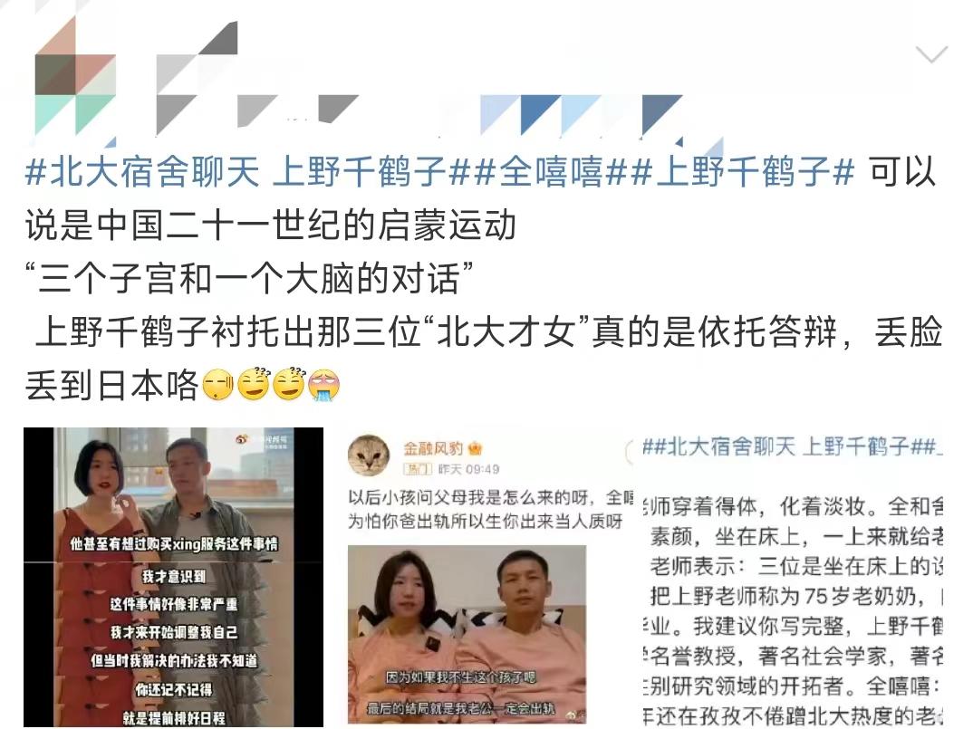 但随着舆情发酵,网友很快将批判对象由访谈本身转移到三位北大博主身上,大骂她们丢脸掉价,这反过来又再次印证了上野千鹤子的观点: