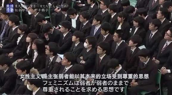 在东京大学的迎新现场,面对无数充满朝气的日本年轻人,上野千鹤子毫不避讳地指出: