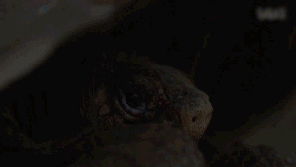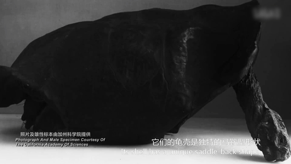 终于,它现身了!在考察团放置的食物引诱下,一只年长的雌龟缓缓出现在人们面前,它有着带开口的马鞍形状外壳,个头也比正常象龟大一圈,它就是人们苦心寻找的费尔南迪纳象龟!