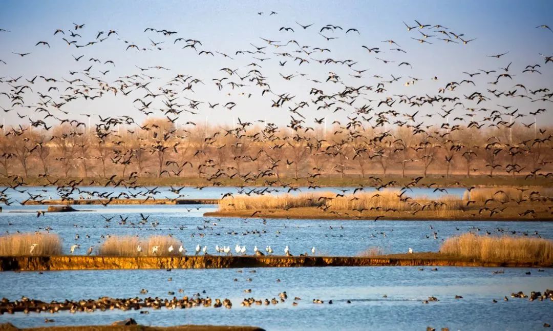 图/武汉市园林和林业局候鸟要在这里安心度过整个冬季,待到3月左右,迁徙而来的过冬候鸟缓缓北归,非常壮观。