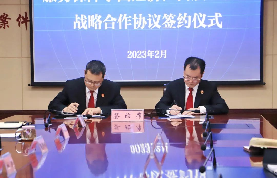 2月23日,凉山州中级人民法院与攀枝花市中级人民法院共同签署司法服务保障攀西经济区高质量发展战略合作协议。凉山中院党组书记、院长袁俊鹏,攀枝花中院党组书记、院长黄志勇出席签约仪式并讲话,两地法院相关院领导、部门负责人参加签约仪式。