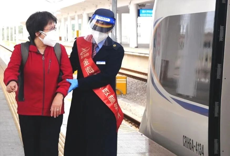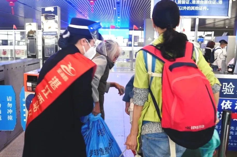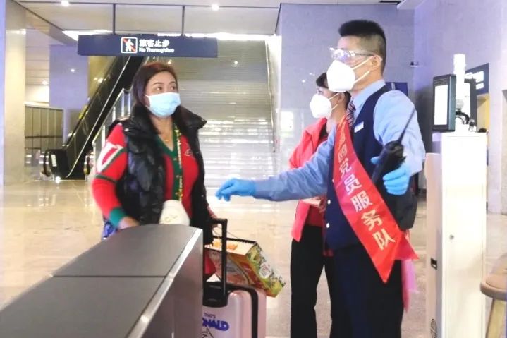“金海鸥”党员服务队和青年团员发挥青年力量,为有需求的旅客提供帮助,用敬业的精神和爱心接力,为旅客铺就一条安全、顺畅、温馨的出行平安路。