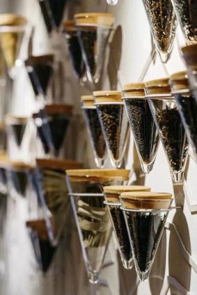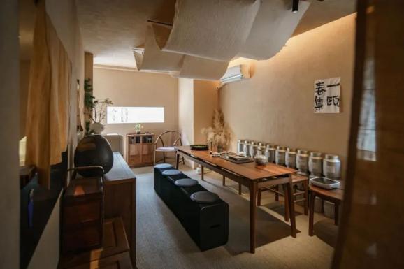 原木色美学呈现现代国茶空间,充满东方美学气质。百子柜茶墙里储放着数百种好茶,从名声响亮的品类到小众冷门的口味应有尽有,说是小型茶博馆也不为过。