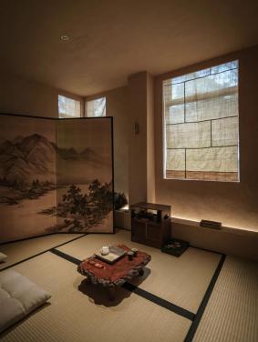 展陈区摆满了各式精致茶具和陶艺;中式茶室中,人文挂画、中式靠椅、木质矮柜等装点为茶室注入气韵;榻榻米茶室的传统屏风让人有穿越时空的恍惚感……每处细节都很考究。11:00-19:00