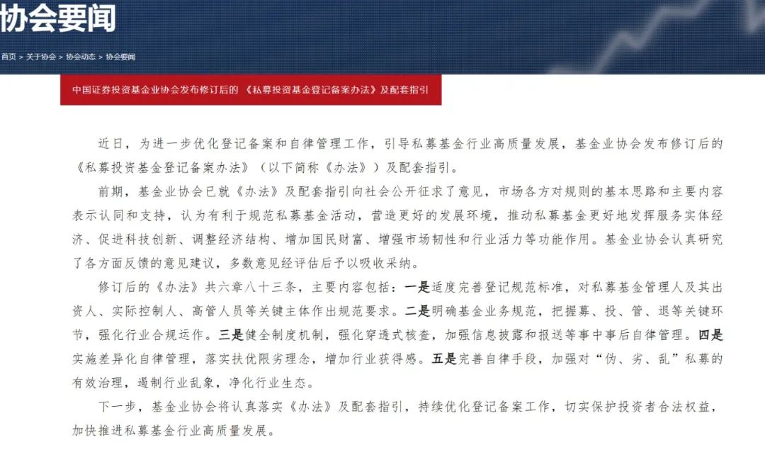 中基协表示,从前期向社会公开征求意见的情况看,市场各方对规则的基本思路和主要内容表示认同和支持,认为有利于规范私募基金活动,营造更好的发展环境,推动私募基金更好地发挥服务实体经济、促进科技创新、调整经济结构、增加国民财富、增强市场韧性和行业活力等功能作用。