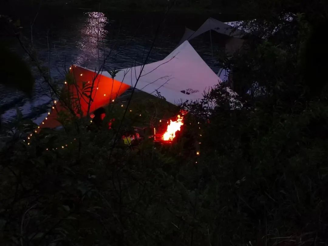 没有太多专业户外知识,但有了车这样的避难所,半搬家式露营远够几个人玩得舒服。去鲁班湖,车子走着野路,隐身在植物里,撑开天幕,拉起氛围灯,由昼至夜,湖边静谧美好。