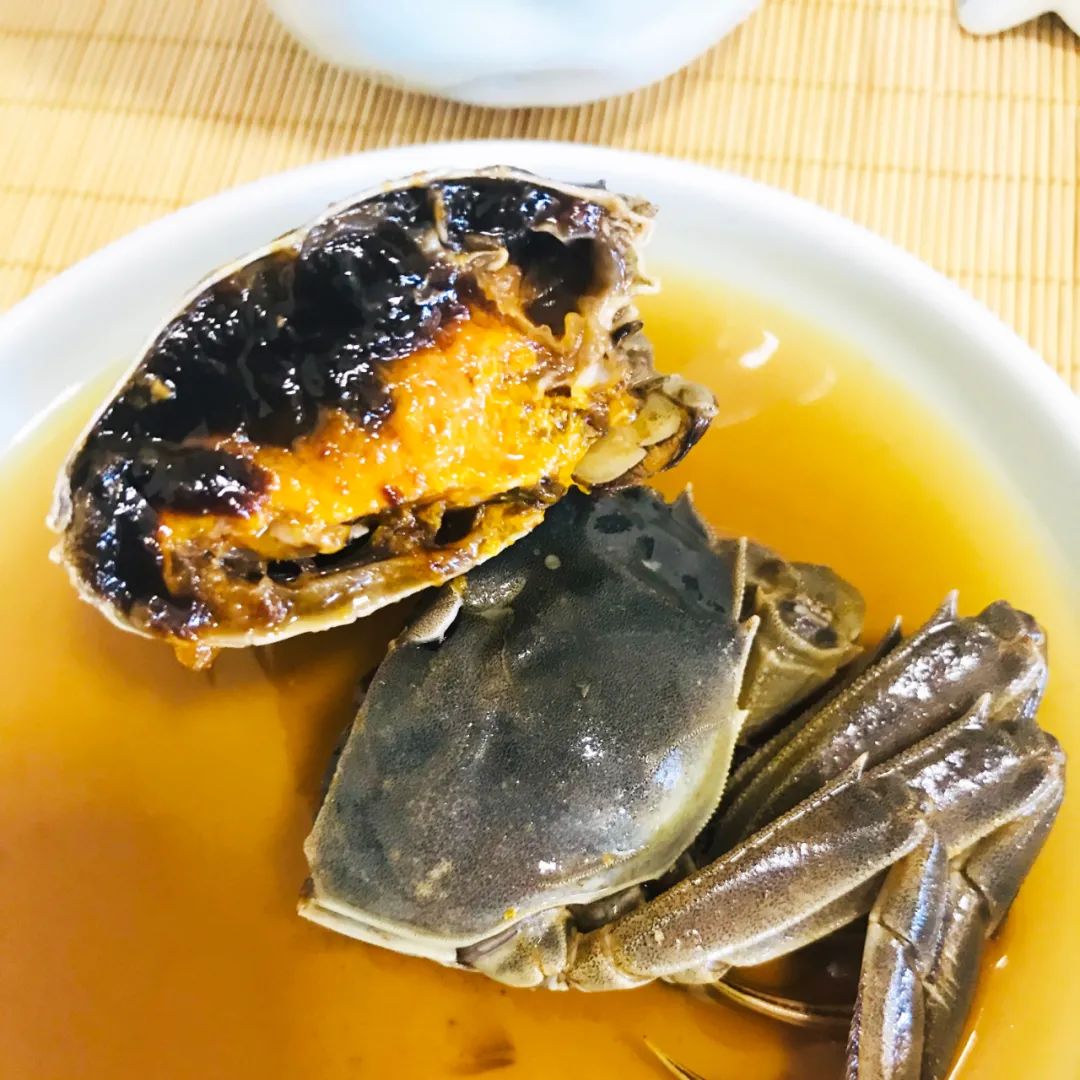 醉蟹,用花雕醉一只大闸蟹,一口酒香,和着超香的蟹黄,和极为入味咸鲜的蟹肉……