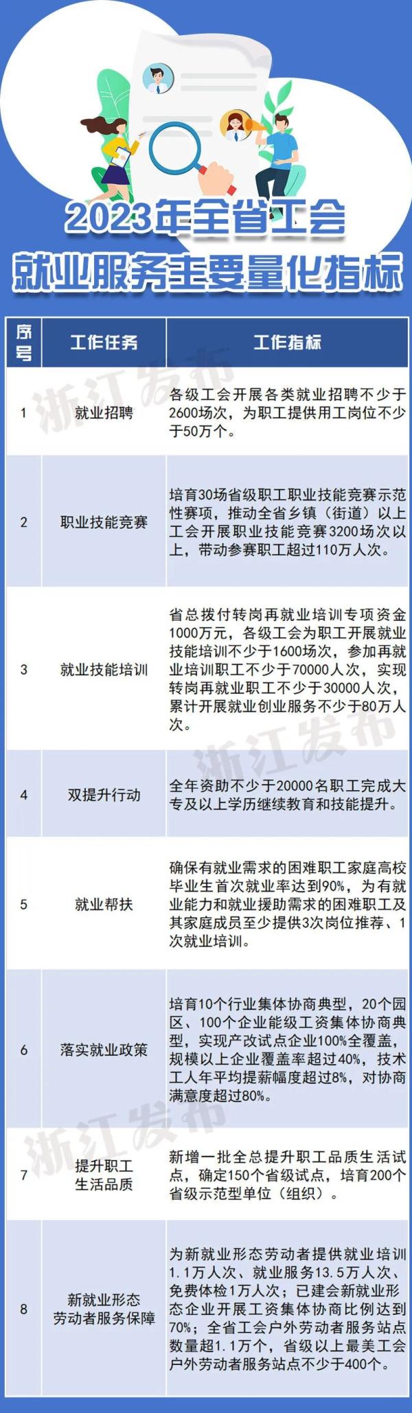 浙江省总工会:2023年为职工提供用工岗位不少于50万个