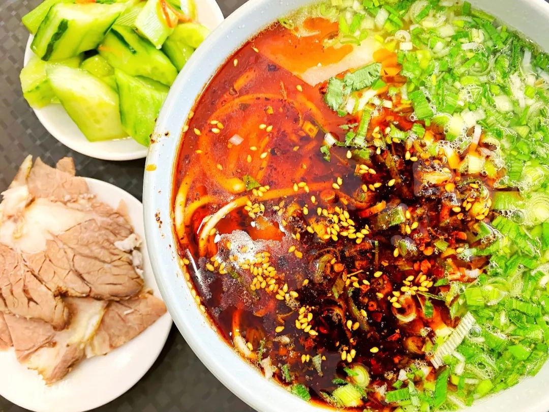 首先,是面的粗细。从细到粗分别是毛细、细的、三细、二细、韭叶、二宽、大宽,细的是入门选项,喜欢面条咀嚼感的也推荐选二细。一般都可以在窗口和师傅沟通“面大面小”,也就是面的多少,根据自己的胃口选就好。辣椒油、蒜苗、香菜这三样,默认是都放的,如果有忌口,也要在此时说清楚。具体到一套“组合拳”,可以是这样:“细的/二细,面多些/少些,辣子多些/少些,要/不要蒜苗香菜。”