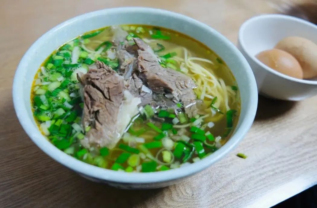从小到大,面的价格从两块钱涨到八块钱,流程可一点没变。可以说,这里就是兰州人记忆里牛肉面馆的样子。当然,陈记不止有氛围,这里家的味道也的确值得专程来一次。不像大部分牛肉面馆有小菜、各种肉和小吃可选,这里的菜单,就和整个店面的装修一样,删繁就简,只留下最有用的三样——牛肉面、牛肉、鸡蛋。纯纯的碳水加蛋白质。