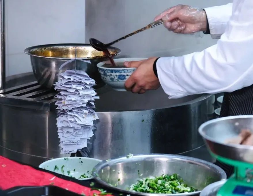 虽然早有耳闻,但说来惭愧,作为兰州人的我,也是今年才第一次吃到陈记。去之前,对于陌生的馆子,心里还是有点疑虑,但门外等待取餐的长长队伍,以及已经很少见蹲在门口吃面的人,算是给我吃了定心丸。说起来,这也是兰州牛肉面馆与外地连锁店之间的一大区别。甭管扫码点餐多么方便,去兰州吃牛肉面,还是得乖乖去门口点面付钱拿票,再排队去窗口跟师傅一手交票一手端面,当场沟通面的粗细和是否加辣椒、香菜。如果有同伴,还能提前帮忙去找找空位,要是独自一人赶时间,就只能喜提在马路边“兰州蹲”的机会。