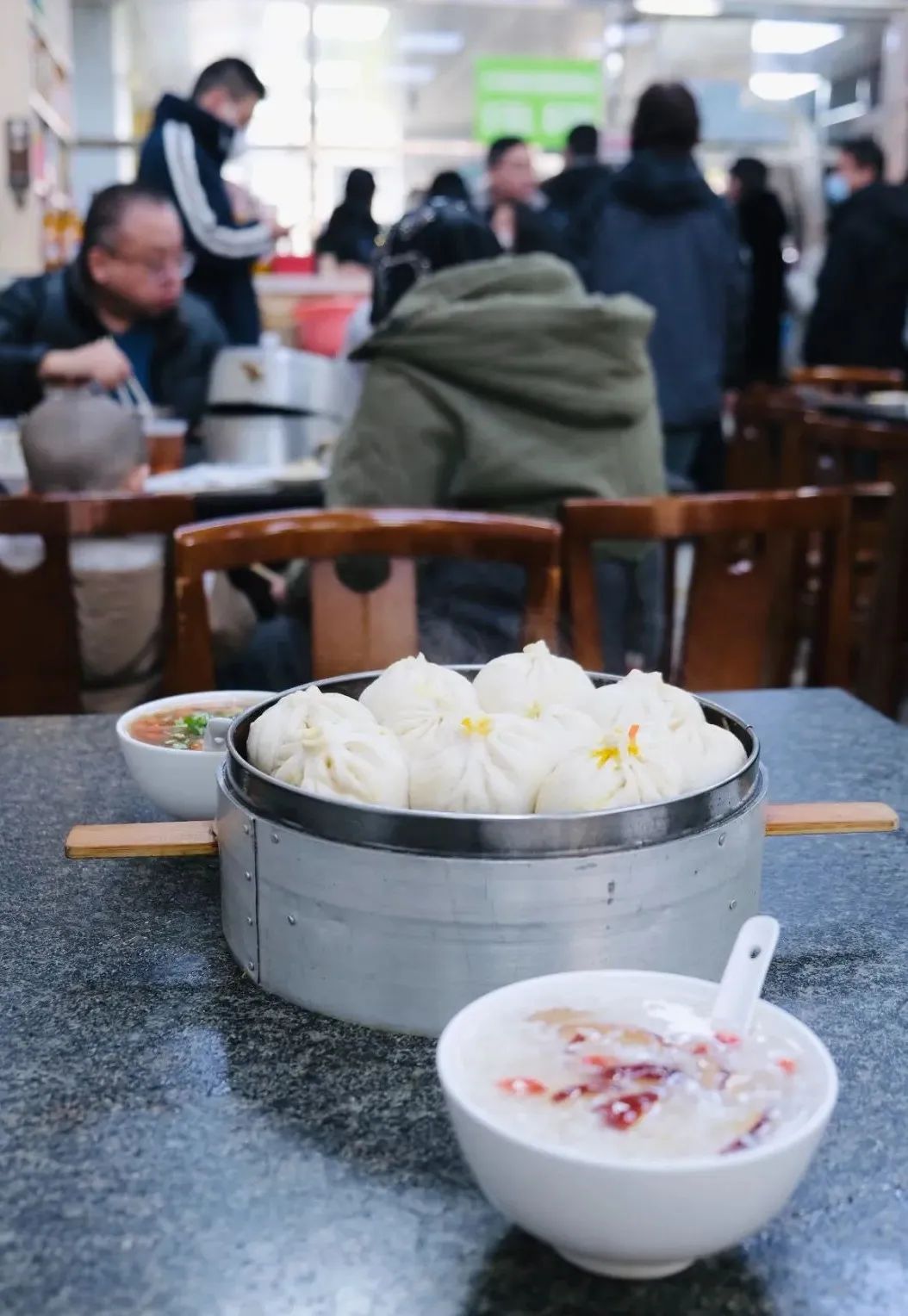 西北的包子皮发得恰到好处,既有弹牙的空间,也不会像上海的肉馒头那么喧软。每一只都底薄顶厚馅料足,咬上去是包子特有的丰富口感。蘸一下自己调的辣椒和醋,有节制的空隙刚好可以容纳适量的调味,不会过于喧宾夺主。强烈建议大家点胡辣汤或是醪糟,包子的调味比较重,温和的胡辣汤和甜糯的醪糟,能提供很好的节奏感,是对重口味的完美调剂。
