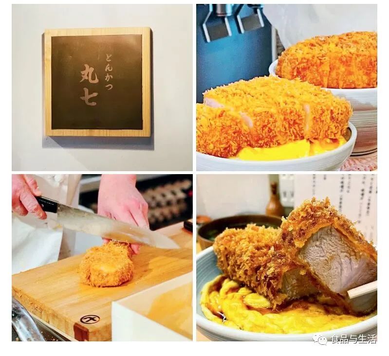 通常等顾客来了后现炸猪排,先在猪排外裹几层鸡蛋面糊,再裹满面包糠,使用低温熟成的方法炸制,厨师用刀均匀地切成五六块,每一块都是厚厚的5厘米,分量感十足。米饭则需选用日本产的口感超好的大米,约100克,置于碗底,面上先铺一层现煎的金灿灿的鸡蛋饼,再码上切好的厚猪排,淋上该店特制的酱汁,盖个碗就端上来了。吃一口炸猪排,外酥脆、内粉红鲜嫩,搭配秘制酱汁,非常下饭。不过,这家的厚切炸猪排饭并没有搭配任何蔬菜或添加葱、姜、蒜等辅料,只配一碗加了超多扇贝的味增汤,这一套猪排饭价格实惠,吃完简直就是用满嘴流油的猪排塞饱顾客的肚子,按日本人的说法就是,能获得很大的满足感。