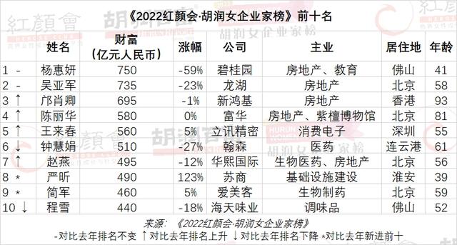 去年底,胡润研究院发布的《2022红颜会·胡润女企业家榜》中,杨惠妍财富虽然缩水1100亿,但仍然以750亿元,第十次登顶中国女首富。