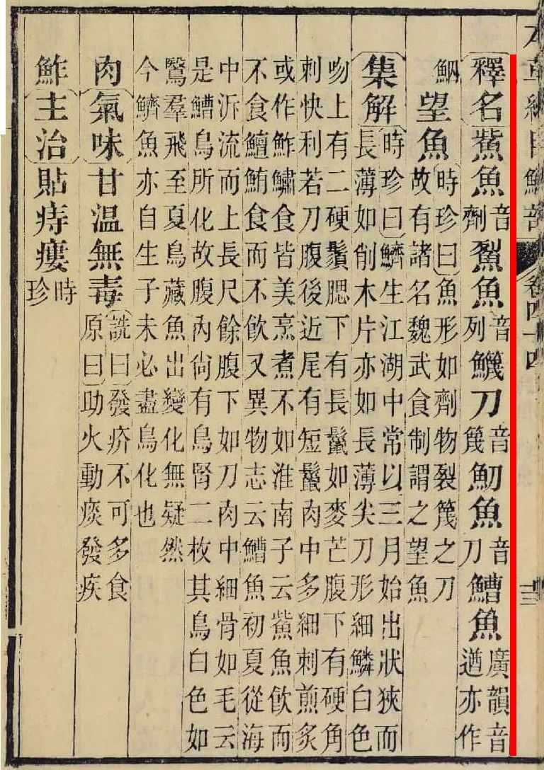 其实古人对刀鲚的认识也是一个渐进的过程。明代李时珍在他的巨著《本草纲目》中就充分总结了前人的一些观点,并加以细分,其中这样写道: