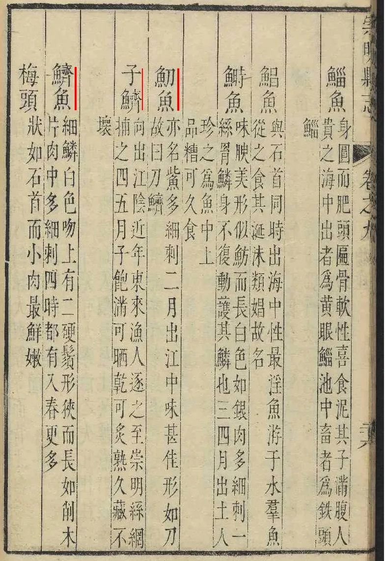 《雍正崇明县志》记载了“鱽鱼”“子鲚”“鲚鱼”三个种类