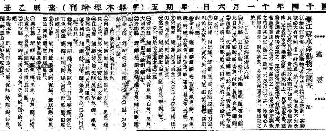 《申报》1925年11月6日 江苏水产动物之调查中记载刀鱼产地