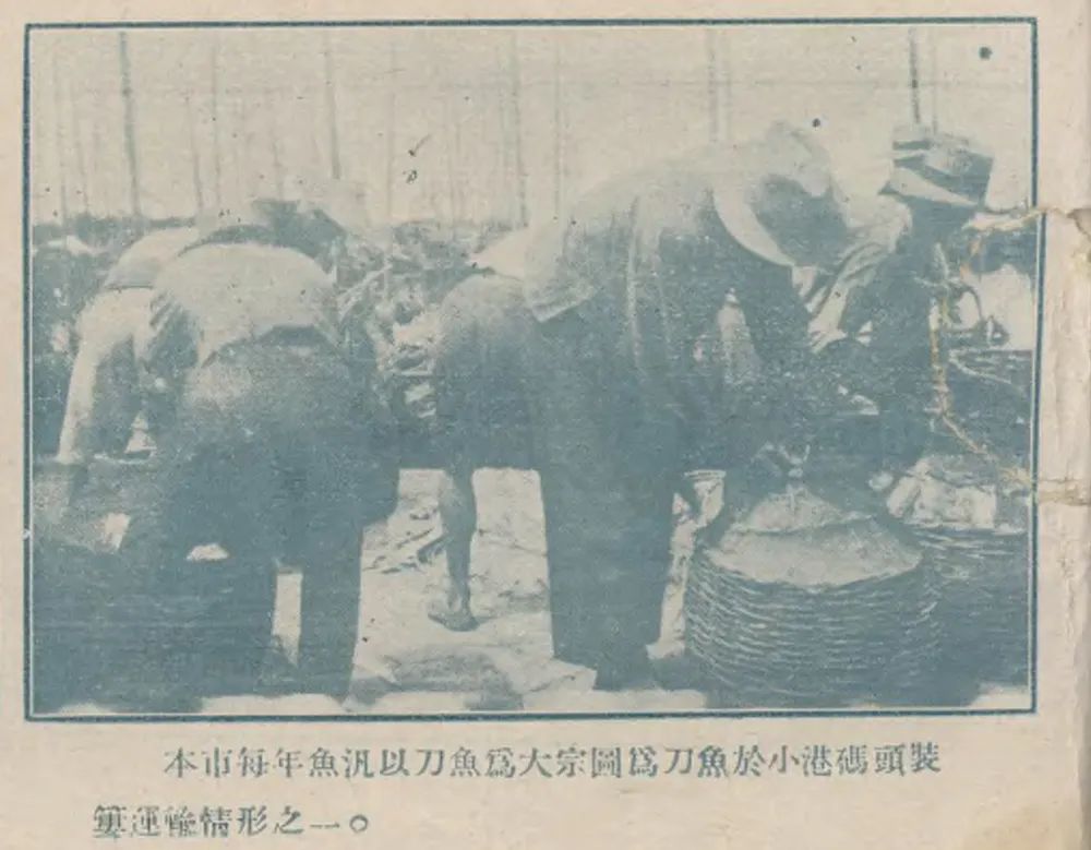 上海出版的《水产画报》1929年第26期中刊载码头装卸刀鱼鱼获的场景