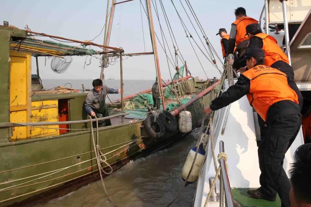 2016年,执法部门在上海附近水域检查渔船是否存在非法捕捞刀鱼行为图片摄影 | 赵立荣