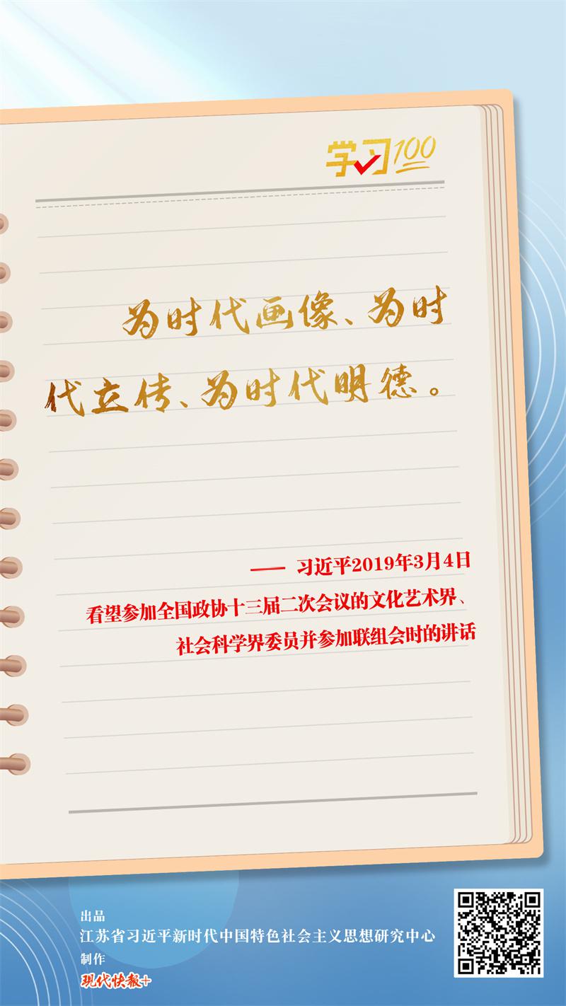 希望大家承担记录新时代、书写新时代、讴歌新时代的使命,勇于回答时代课题,从当代中国的伟大创造中发现创作的主题、捕捉创新的灵感,深刻反映我们这个时代的历史巨变,描绘我们时代的精神图谱,为时代画像、为时代立传、为时代明德。