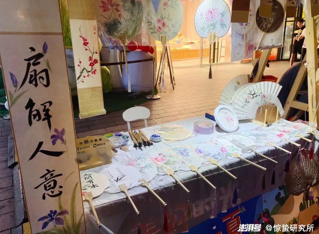 生意特别好的时候,手绘扇的库存消耗大,这时菲菲就会在摊位上现场作画补充库存,而这种展示也意外吸引了许多路人的围观。而菲菲除了给学生上课,几乎没有遇到过被一群人围观的场景。谈起这些经历,菲菲只觉得有趣,摆摊卖扇子不到20天,就治好了她的深度社恐。“以前我很宅,生活很单调,只有工作和绘画。但现在我认识了很多朋友,性格也变开朗了,随便跟一个顾客都能聊上几句。”
