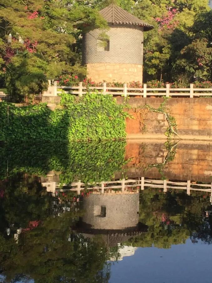西边紧邻盘龙江,东边面对昆明南北主要交通干道——北京路。外面的世界高楼林立,尽显现代化都市风范;墙内则是绿意盎然,闲亭、小池、飞鸟,几座古典小洋楼藏于大片绿荫。