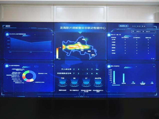 ↑龙海联片调解暨诉非联动智能中心平台搭建联片调解网格,设立巡回办案服务点,建立诉前行政协调机制、访调对接机制,聘请调解员驻点办公,建成联片调解暨诉非联动智能中心……机制创建以来,龙海区共开展联片调解786场次,化解纠纷7516件,龙海法院新收民商事案件比减2477件、比降11.22%。漳州市通过联片调解网格构建从源头到诉前再到审判执行的多元解纷和诉讼服务体系,真正实现将矛盾化解在基层。